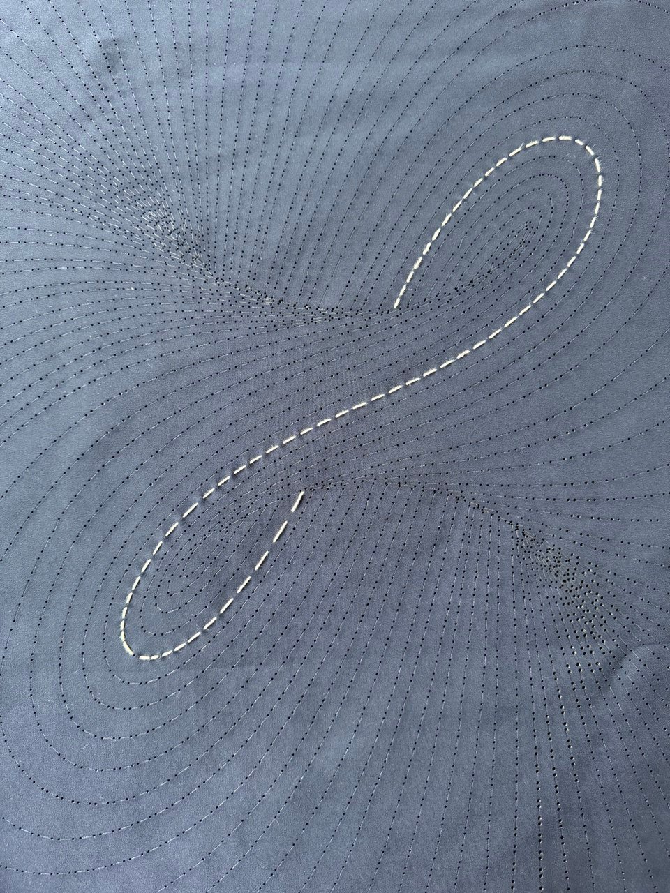This 50×50 cm fabric blank features a laser-cut sashiko pattern inspired by the geometry of a torus vortex. The design combines traditional Japanese embroidery with a contemporary, mathematical twist, making it perfect for creating your own unique pillowcase or textile artwork.The holes are precision-cut to guide your stitching, allowing you to explore sashiko embroidery with ease while adding your own choice of thread and color. Each piece invites you to transform the fabric into a personal, handcrafted object that bridges craft, design, and mathematics.The pattern is laser cut and engraved in a piece of soft shell poplin and fleece fabric, synthetic. Three shades of blue are available. The example picture is 'Dark blue' color.You will need to embroider it yourself by hand, 3000 stitches, with conventional embroidery floss or yarn, No.6 or No.8, that you have to provide yourself.You would also need to provide yourself: inner cushion 50x50cm, zipper, and a piece of fabric 50x50cm for the backside, all to your style and liking. All to create a complete decorated pillow.Order now for delivery in October 2025. Sent in an envelope.Worldwide shipping included. (everywhere with normal postal service.)